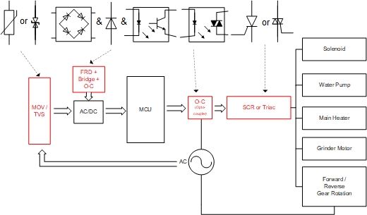 ÈËÃǰѵç×ÓÊÖÒÕÓ¦Óõ½¿§·È»úÉÏ£¬ÊµÏÖÁËÄ¥·Û¡¢Ñ¹·Û¡¢×°·Û¡¢³åÅÝ¡¢É¨³ý²ÐÔüµÈÄðÖÆ¿§·ÈÈ«Àú³ÌµÄ×Ô¶¯¿ØÖÆ£¬´´Á¢ÁËÈ«×Ô¶¯µç×Ó¿§·È»ú¡£ Ó¦ÓÃÓÚÏûºÄµç×ÓÁìÓò£¬Î¤µÂ1946¹ÙÍø×îаæ ÄÜÌṩ½ÏÁ¿ÆëÈ«µÄÔª¼þ½â¾ö¼Æ»®¡£ºÃ±È£ºAC ÊäÈë¶Ë·ÀÀËÓ¿µÄѹÃôµç×裨MOV£©¡¢µçÔ´²¿·ÖÓÿì»Ö¸´¶þ¼«¹Ü£¨FRD, fast recovery diode£©¼°ÕûÁ÷ÇÅ£¨Bridge£©¡¢¹âµç¸ôÀëÆ÷¼þ£¨Opto-coupler£©¡¢¿ØÖƸºÔØÍ¨¶ÏµÄ¿É¿Ø¹è£¨SCR & Triac£©µÈ¡£